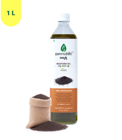 Samruddhi Cold Pressed Mustard Oil is extracted using the traditional wood pressed method to preserve the natural aroma and nutrients of mustard seeds. This 100% pure and chemical-free oil is ideal for cooking, frying, and traditional recipes. Rich in healthy fats and natural antibacterial properties, it supports both culinary and wellness needs.